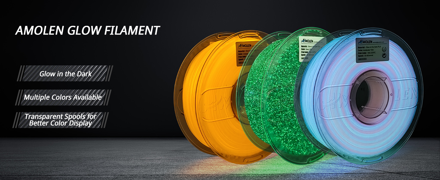 AMOLEN 3D Printer Filament is a 1.75mm PLA filament featuring a unique starry sky glow-in-the-dark effect. It offers precise dimensional accuracy (±0.02mm), strong bed adhesion to prevent warping, and smooth, tangle-free printing. Enhanced glow duration is achieved by UV light exposure, making it perfect for standout night-time 3D creations. Packaged in a 1kg spool, it’s designed for reliable, high-quality prints with excellent customer support from an industry-leading brand.