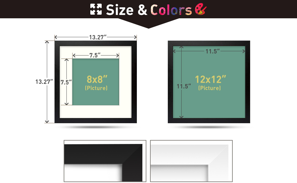 FrametoryPicture Frame - Made to Display Photos with Ivory Mat - Swivel Tabs - Glass - Wide Molding - Wall Display - Horizontal/Vertical White 12 x 12 (Set of 9)