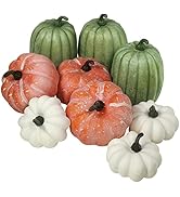 Cute decorative pumpkins worked well for Halloween decorations. I honestly thought they would be squishy plushes, but they are solid and will last longer. My only complaint is not having an even number of each color. That would have been nice.