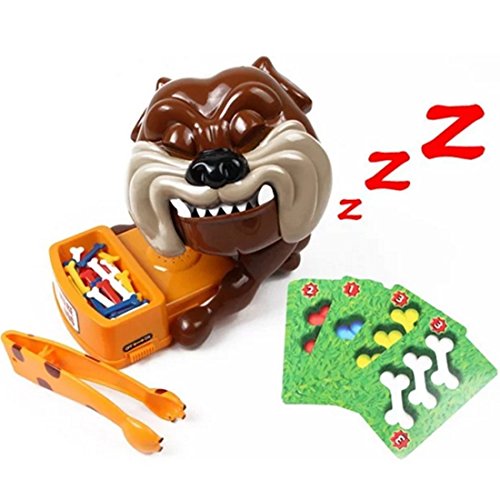 Features: Size: 7.8 x 7.8 inch (L x H) Suitable Age: Above 5 years old Weight: 0.77 kg Game Type: Party Game,Family Game Interactive intelligence games for parent and children ,also good for the party who want have much fun,Hand-Eye coordination, Parent-Child interaction, Meticulous Movement, Don't take Buster's bones is the nerve wracking game of bone stealing fun.;Can you steal Buster's bones without waking him? How to play the game? 1, Assigned cards to the gamers, play the game according to the game rules. 2.Turn the switch from "OFF" to "ON", press down the dog's body and make it sleep. 3.Stole the corresponding bones from the dog bowl lightly,remember lightly! 4.The dog will wake up anytime, standing up and barking! 5.Only the steadiest hand with nerves of steel will win. Game Rules: 1. Assigned each card to the gamers, see how many bones on the card, gamer need to pick out the according bones from the dog bowl. 2.The more quantity the more dangerous! If get the blank card, then you are safe, do not need to pick up the bones. 3. When the gamer finished picking the quantity on the card, then come to the next gamer, until the dog wake up, the gamer lose! ---Our Guarantee --- We personally guarantee our products are made to the highest standards that's why we offer a Lifetime Guarantee! OUTSTANDING CUSTOMER SERVICE and always there to assist you with any problems or concerns. LIFETIME WARRANTY If you have any disputes, or just have a question, do not hesitate send E-mail to contact us , We take full ownership and responsibility for the quality of our products and will do our very best to solve your problem quickly and efficiently. So what you waiting for? Click "Eternal Loves" the add to cart button now. Best Regards Sincerely :Eternal Loves