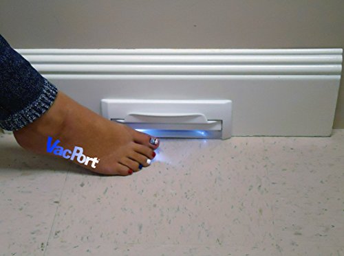 Convenient and easy to use! Just a slight touch with your toe activates the VacPort sweep inlet valve. Just sweep the dirt toward the opening and let the power of your central vacuum to the rest. Great for use in the kitchen, utility room, bathroom, workshops, hair salons or any sweepable area. Simplified Installation No need to purchase an installation kit. The VacPort connects straight from the back of the unit into the existing central vacuum piping. No elbows required to make the connection. And because VacPort was designed with a finishing flange built in, no trim plates are required. And best of all...it's made in USA! The VacPort ships with a decorative trim plate and can be used when replacing a Vacpan or Vacusweep product. The trim plate covers the previous screw holes so the VacPort can hold in place. VacPort has a lifetime guarantee and is unbreakable. Dimensions: 8 1/4 inches wide 2 7/8 inches tall 1 1/8 inches deep from the back to its furthest protrusion. Overall depth is about 3 15/16 inches