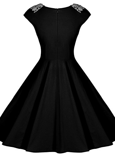 GRECIA Women's Vintage Audrey Hepburn Style 40s 50s Party Swing Dress L Black