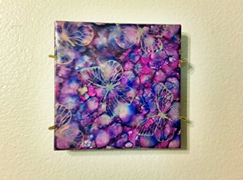 Alcohol ink on a 4 by 4 inch porcelain tile. Multi dimensional pink and purple with metallic butterflies. Coaster, easel display or coaster use