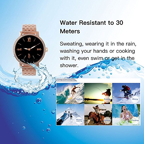 Specification: Brand: EZIIX Model: E1 Deluxe Series Item Shape: Round Case Material: Stainless Steel 316L Case Diameter: 45mm Case Thickness: 12.4mm Water resistant:30 meters Parameters Chipset: MTK 2502A Memory: RAM 128M, ROM 32M Display: 1.22" Round Touch Screen Resolution: 240 * 204 pixels Bluetooth: Support3.0/4.0 G-sensor: Enabled Vibrator: Enabled Function: (1)Push mobile phone notification (Facebook, twitter etc.) to watch; (2)Pedometer, Sleep monitoring, Heart rate monitoring, Sedentary reminder; (3)Remote control phone's camera,Alarm,Calendar, Waken up by shaking hand; (4)Compatible with IOS 8.0+ or Android 4.3+; (5)Language:English, German, French, Italy, Russian, Spain, Portugal, Arabic Don't support SIM card and TF card. Don't support phone call & camera. Accessories: Charging cable (1.2m) x 1 User Manual x 1 User Guide x 1 FAQ of EZIIX Smart Watch Q1. What languages does E1 support? A1. It supports English, German, French, Italy, Russian, Spain, Portugal, Arabic Q4. Can I change the strap of the E1 smart watch? A4. Yes, the strap can be changed and removed. Q6. Does it support IOS or iPhone 6/6plus? A6. Yes, it supports it. Q7. Is it Touch Screen? A7. Yes, it is 1.22inch, 240*204 pixel, Touch Screen. Q8. Does it support SIM card, TF card or Memory Card? A8. Sorry, it doesn't support SIM card, TF card or Memory Card. Q10. Is there a camera on it? And the pixels of it? A10. Sorry, no. Warranty: EZIIX is brand of registered in the USPTO and protected by USA Law.