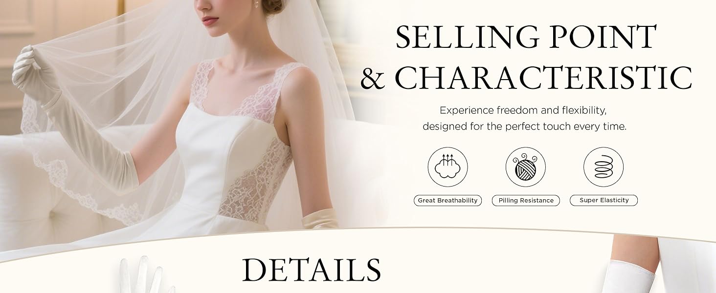 Classic Long Opera Pageant Party 1920s Satin Gloves Stretchy Adult Size Elbow Wrist Length 20.5" (Long Smooth 20.5in/White)