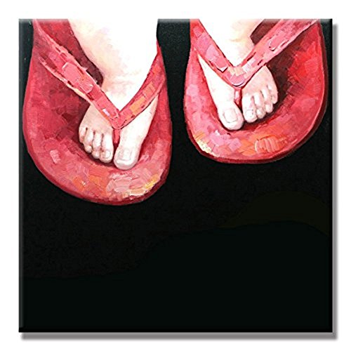 WALL ARTS Memories of Childhood Hand Painted Oil Painting People with Stretched Frame Wall Art 24 x 24 Inch For Room