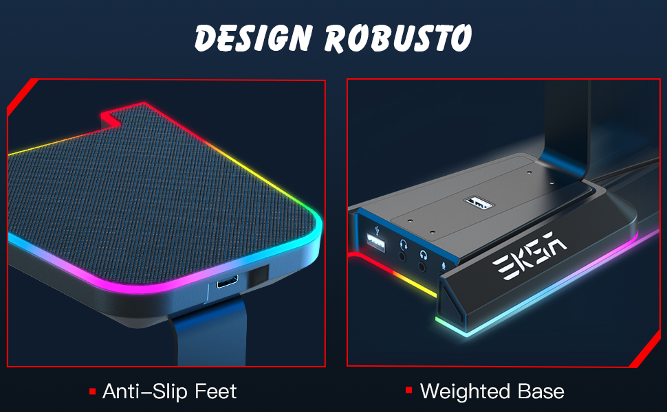 The EKSA Gaming Headset Stand combines functionality and style, featuring dynamic RGB lighting, 7.1 surround sound capabilities, and multiple connectivity options. Designed for gamers, it offers a stable and stylish solution for storing headsets while enhancing your gaming atmosphere.