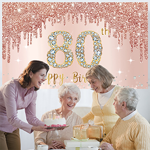 This Happy 80th Birthday Banner Backdrop measures 73 x 43 inches and features an exquisite rose gold design with sparkling elements. Made from high-quality polyester, it is lightweight, durable, and easy to hang, making it perfect for both indoor and outdoor celebrations. Ideal for creating a memorable atmosphere and capturing beautiful moments during the party.