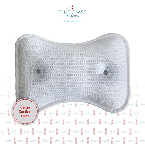 The Luxury Laurent Spa Bath Pillow for Bathtubs, Jacuzzis and Hot Tubs.Indulging Relaxation for your bathing experience! Turn a regular bathtub into a luxury bathtub with the Laurent from Blue Coast Collection! Is your towel constantly falling into the tub? Tired of hard/itchy pillows, or pillows that soak up water and become useless? Do you just want to place your pillow and relax? The Laurent Bath Pillow is made out of soft fibres for a smoother, more relaxing bath, and designed keeping your comfort in mind. It easily and safely attaches to bathtub with six strong suction cups and comes in a great bag for a gift to family and friends. Open Air Fibres lets air and moisture flow seamlessly. Inspired by the beauty of the French Riviera, Blue Coast Collection brings you premium high quality bath products carefully selected for your personal indulgence At Blue Coast Collection we stand by our products and the Laurent comes with a no hassle full warranty, with absolutely no hidden fees or problems. Money Back Guarantee! So go ahead and click add to cart and treat yourself to an Indulging Experience Today!
