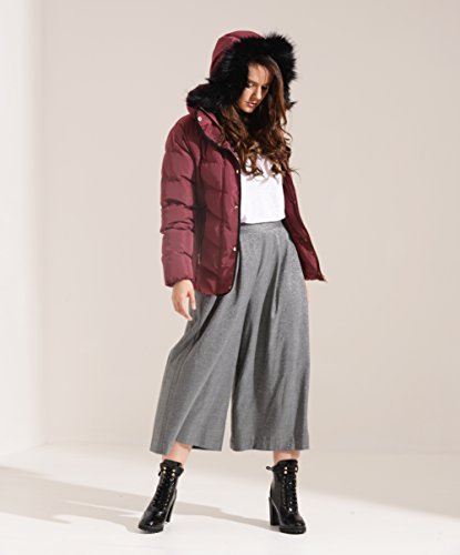 Women's Maroon / Burgundy Black Hood Fur Quilted Winter Puffa Jacket ORCHID. Black Hood Fur