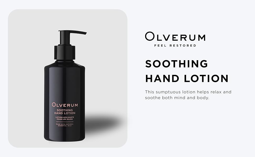 Olverum Soothing Hand Lotion is a 250ml non-greasy formula enriched with Shea Butter, Aloe Vera, and Vitamin E, designed to deeply moisturize and hydrate all skin types. Its unique blend of natural ingredients not only conditions the skin but also provides a soothing experience, making it perfect for daily use.
