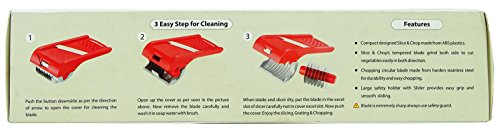 ✤ Royal Kitchen Stainless Steel Blade Vegetable and Fruit Easy Chop and Slicer Set. ✤ Brand: Royal Kitchen. ✤ Blade Material: Stainless Steel | Body Material: ABS Plastic. ✤ Blade Colour: Silver | Body Colour: Red and White. ✤ Size (In Inches) : Length: 8, Width: 3 (Approx)✤ Sale For: 1 Set(Includes 1 Chopper and 1 Slicer).✤ Weight: 280 Grams (Approx)Features:-1) Compact designed slice and chop made from ABS Plastic.2) Slice and chops tempered blade grind both side to cut vegetables easily in both direction.3) Chopping circular blade made from harden stainless steel for durability and easy Chopping.4) Large safety holder with slider provides easy grip and smooth sliding.5) Blade extremely sharp always use safety guard.✤ Actual colours may vary from those shown due to the nature of photographing and monitor colour settings.