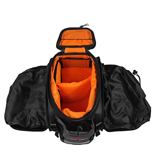 Product Details: Brand:CBR Material:ultra-fine fiber EVA + polyester, 210D cloth Size:about 33*26*20cm Weight:1.18kg Uses: medium and long distance load, can be placed valuables (such as SLR camera) Features: Sewing needle sewing to ensure high quality Leather comfortable high-strength shoulder strap ,can be use for handbag, easy to carry High-strength rubber band pull rope, easy to easily tied items, can be fixed and adjustable Reflective design on two size to increase night ride safety There are two washable velvet pad inside the bag, can protect the valuables, anti-collision;The rear side can be placed the water bottle; Open both sides of the bag, can be extended for the camel bag, the capacity increases, can load more items