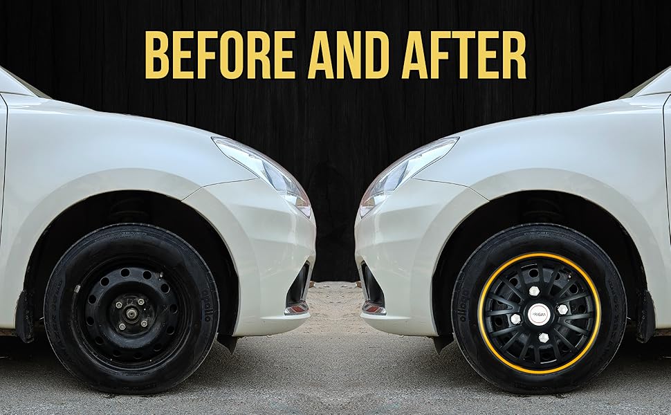 The PRIGAN Alto K10 Black Yellow Wheel Cover is a set of four 13-inch universal wheel covers designed specifically for stock steel wheels. With a press fitting installation, these covers provide a quick and economical way to enhance your vehicle's appearance while ensuring a snug fit with adjustable hub caps. Made from premium quality plastic and featuring rust-resistant powder-coated fitting rings, these wheel covers are both stylish and durable.