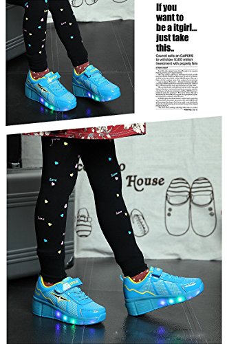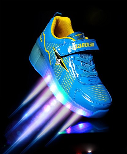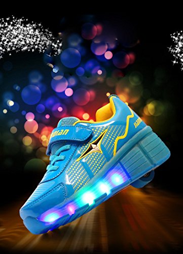 • Single wheel • Outer Material:cavans • Rubber sole,Outsole: LED Light Up •100% new and high quality •It will make you look cool and different. • Package includes: 1 pair shoes • Color:as the pictures shows • You are faster and cooler than others when you have it. • It is very convenient and very comfortable, it is also a good gift for your kids or best friends. •Shoes can be cleaned by soft fabric. But cannot be washed. •There is a button behind shoes ,hold it down, the wheels will pop up •Hold down the button,then press the pulley into the sole, and then release,Pulley recover. Note: 1.Since the size of shoes from different companies may be different, our shoes may run larger or smaller than the size you're used to, please check size cart in the product page carefully before ordering. 2.Suggestion: Please remember to check the actual measurements(Feet Length ) in the size chart on the shoes product page and compare them to your feet measurements before ordering. 3.Size: please allow 0-3 cm difference due to manual measurement. •Please buy a bigger size than usual. •Tips: •Beginner please be cautious when you are sliding. •For safety, children should be accompanied by an adult when using this shoes. Before buying it,customer need to know: •The maximum number of flash estimates 3 months. •Electronic mode, non-replaceable batteries, electronic lights problem all do not belong to the quality problems! If you have any problems,please feel free to contact with our service customers,Thanks.