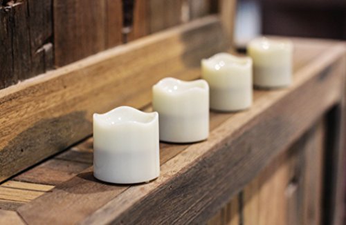 BATTERY TYPE: Runs on 2xCR2450 batteries(included)and replaceable METRIAL: plastic PACKAGE: pack of 4 6 HOURS TIMER FUNTION: Button at the bottom of the tealight set On/Off Automatic Time feature, set to 6Hours 6H : 6 hours lights up, 18 hours off, automatically turn on at the same te on the next day. OFF : OFF FEATURE : Products in full compliance with the ROHS and CE standard. Handmade from real wax and with flickering amber LED bulbs, you won't believe how realistic these LED candles look and feel. Energy-saving,flameless,smokeless and long lasting,zero carbon emission safe to use . Flameless candles are safe to use with children and pets as well as near curtains, beds and other home furnishings. Continuous flickering flame indicates batteries need to be changed.