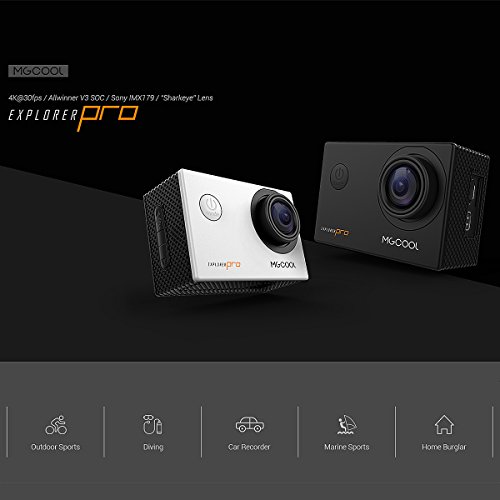 Specification General Brand Name: MGCOOL Model: Explorer Pro Type: 4K Sports Camera Chipset: Allwinner V3 Function: Time Lapse,Waterproof,WiFi,Camera Timer Application: Extreme Sports,Ski,Underwater Features: Wireless Storage Max External Card Supported: TF 64G (not included) Class Rating Requirements: Class 10 or Above Display Screen size: 2.0inch Screen type: TFT Screen resolution: 320x240 Power Battery Type: Removable Battery Capacity (mAh): 1050mAh Charge way: USB charge by PC Working Time: 100 minutes at 4K Standby time: 2h Charging Time: 2.5h Primary Info. Wide Angle: 170 degree wide angle Lens Diameter: 20mm Video/Image/Audio Video format: MP4 Video Resolution: 1080P (1920 x 1080),2.7K ( 2688 x 1520 ),4K (3840 x 2160),720P (1280 x 720) Video Frame Rate: 120fps,30FPS,60FPS Image Format : JPEG Functions WIFI: Yes WiFi Distance : 13m Waterproof: Yes Waterproof Rating : IP68 Water Resistant: 30m ( with waterproof case ) Night vision : No Camera Timer: Yes Time lapse: Yes Auto Focusing: No Anti-shake: No Aerial Photography: No Dimension/Weight Product weight: 0.0650 kg Package weight: 0.4800 kg Product size (L x W x H): 5.90 x 2.90 x 4.10 cm / 2.32 x 1.14 x 1.61 inches Package size (L x W x H): 11.90 x 11.90 x 11.60 cm / 4.69 x 4.69 x 4.57 inches Package Contents: 1 x MGCOOL Explorer Pro Action Camera with Waterproof Case 1 x Camera Bracket 1 x Clip 1 x USB Data Cable ( 72cm ) 1 x Bicycle Stand 2 x Helmet Base 1 x Connector + Screw 1 x English User Manual