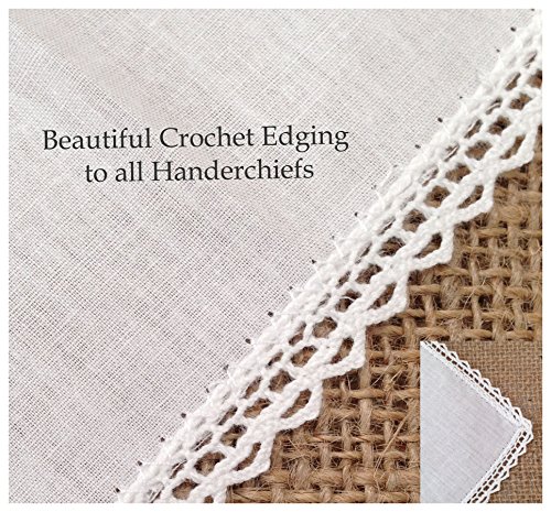 Pack of 3 Beautiful Handkerchiefs. Each Pack contains 1 Embroidered Handkerchief of your choice and 2 Plain Handkerchiefs, each with delicate Crochet Borders. Every Lady deserves beautiful items and these Handkerchiefs are no exception - Marvellous gifts for family and friends as well as suitable for everyday use. These handkerchiefs come packed individually in plastic coverings. However gift wrap is also available. Thank you for shopping with Florence Lilly Uk.
