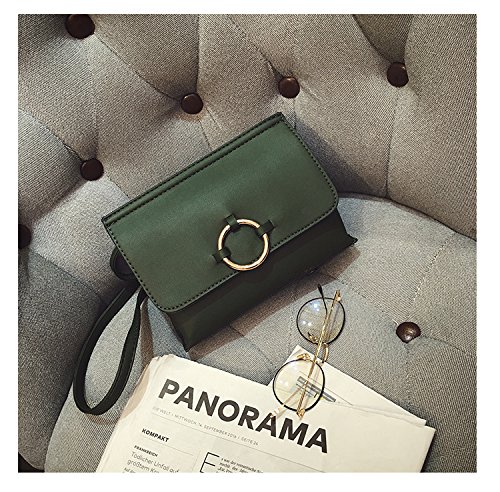 Minimalist Design Crossbody Bag with Adjustable Strap (Detachable), Vegan Leather Mini Flap Shoulder Bag with Metal Hoop for Women's Fashion (Green)