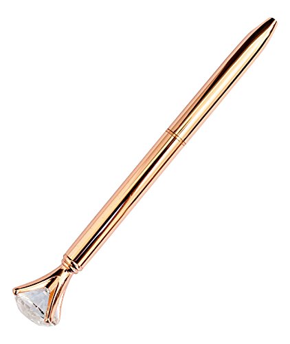 Rose gold ballpoint pen, with large faux diamond topper