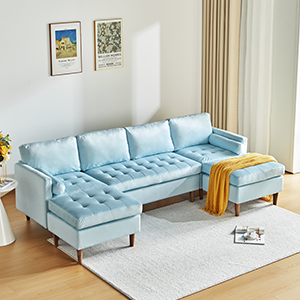 The ORRD U-Shape Convertible Sectional Sofa is a modern, 6-seater velvet sofa featuring a solid wood frame and high-density foam cushions. Its modular design allows easy transformation between U-shape, L-shape, and sleeper configurations, supporting up to 300 lbs per seat. With button-tufted detailing and tool-free assembly, it combines style, comfort, and practicality for apartments and living rooms.