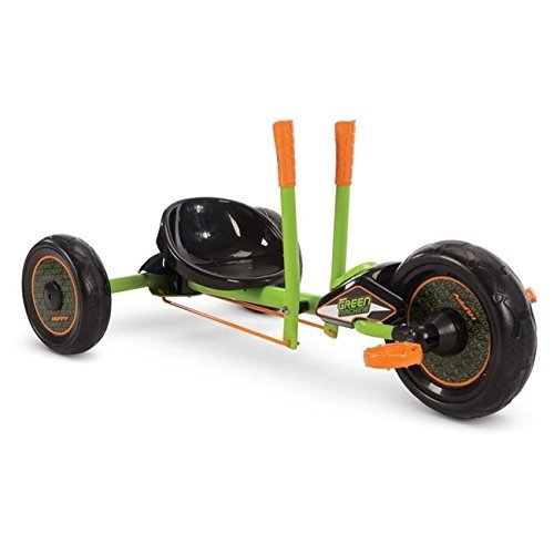The legendary Huffy Green Machine Mini is back with an all new style! The 10 inch Huffy Green Machine features a durable green steel frame, a large 10 inch front wheel, two extra-wide rear wheels, fast action joy sticks and adjustable bucket seat. Do 180° turns with the dual-stick steering and make incredible spins like the pros! The Huffy Green Machine is sure to be the most fun you can have on three wheels!Green, orange and black design.Large 10 inch front wheel.Two extra-wide rear wheels.Fast actioin joy sticks.Adjustable bucket seat.Suitable for ages 3+.