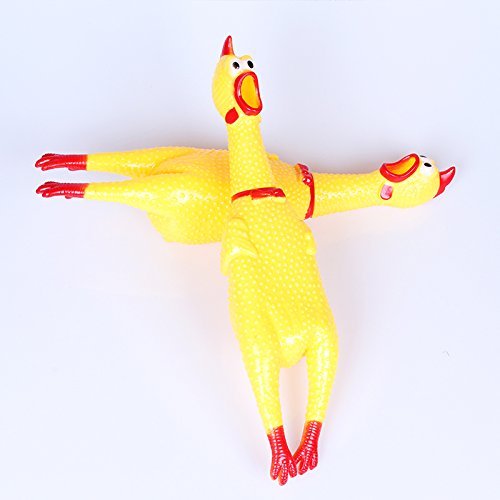 Product Description Everyone needs a rubber chicken at one point in life! THE best way to frighten and annoy others. What can possibly be more fun? Measures 16cm long. Made of rubber. Squeeze it to make it squawk. Also makes a great dog chew toy!