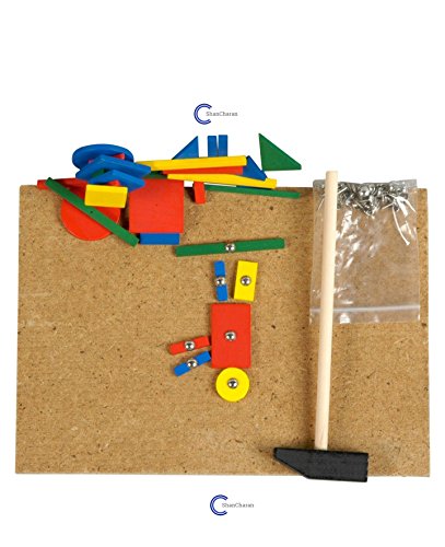 Please note: This kit contains real pins. It is Designed for 6 years plus kids Classic shape game to have a feel of construction. Not suitable for children under 36 months Contains 2 x board 2 x wooden hammer 100 x metal pins 60 wooden shapes are supplied in total 4 kids can play it easily.