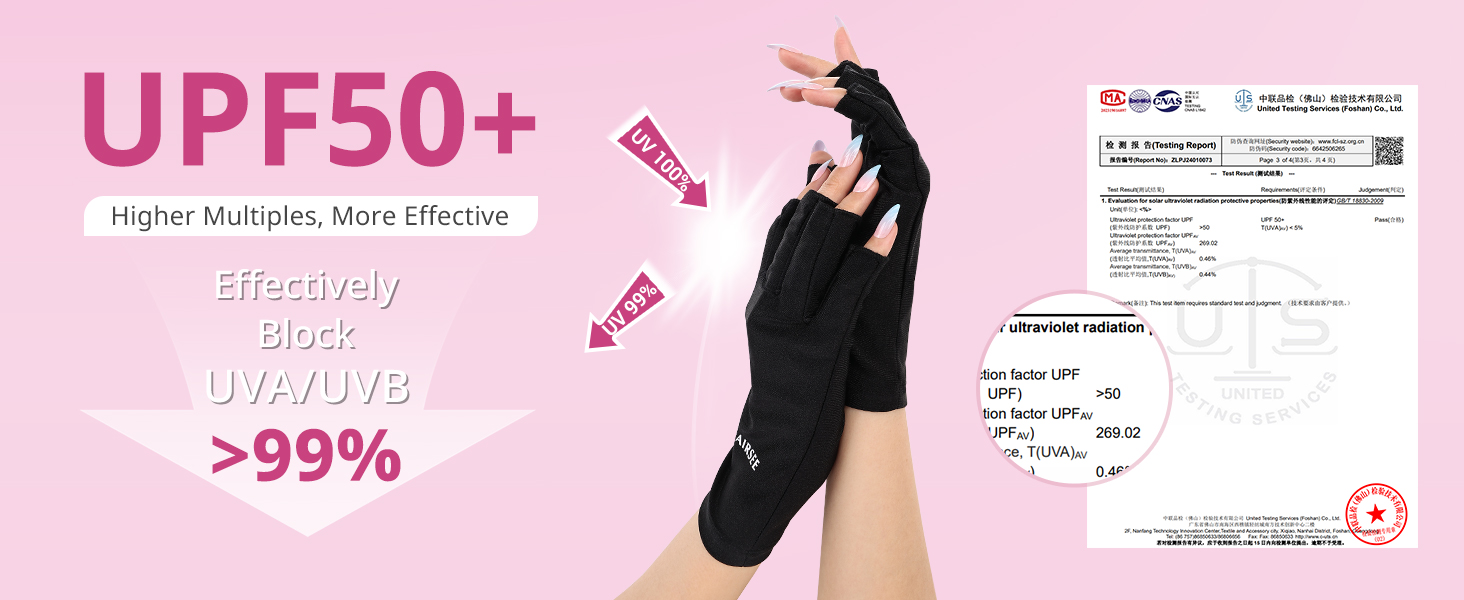 AIRSEE Anti-UV Gloves offer professional-grade UPF50+ protection by blocking 99% of UV rays, crafted from a soft, breathable nylon-lycra blend. Designed with extended, foldable finger coverage, these fingerless gloves fit most adults comfortably and provide durable protection during manicures and outdoor activities without compromising comfort or style.