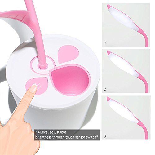 Dimmable LED Desk Lamp with Pencil Holder 1. Creative novelty design kids light: sapling plant LED table lamp with pencil holder, can be used as a night light, bedside light, reading lamp or decorative lights in home, office, nursery school etc. 2. Touch-sensitive control LED table lamp: 3 levels of brightness are controlled easily by touching the power on/off switch 3. Flexible neck desk lights: totally flexible and can be adjusted to different heights and angles, an excellent combination of lighting and decorating 4. Eye-protection and energy-saving reading light: 10pcs LED bulbs produce soft light, no flickering, no dazzling, no harsh to eyes, no-radiation 5. Rechargeable USB desk lamp: built-in rechargeable Lithium battery, powered by USB port, cycle charge led lighting, long life of working. After fully charged, the lamp will last 15 hours consecutively in the dimmest light; 10 hours in medium light and 5 hours in brightest . Specifications Charging Rated Voltage: DC5V Charging Rated Current: 500MA Battery Capacity: 3.7V/18650/1200MA Charging Period: About 3 hours The light Source Power: Low Level 0.125W, Middle Level 0.5W, High Level 1W Intensity of Illumination: LUX(30CM) Switch Type: Touch-sensitive switch Package Included 1x LED Desk Lamp 1x USB Charging Cable(not include adapter) 100% Risk-Free Guaranteed Our seller warranty guarantees that your purchase is 100% risk-free. If for some reason your purchase doesn't work,we will provide immediately Support. KANGVO is committed to 100% satisfaction of our customers. If you find any issue with the product, please feel free to email us. We will fulfill your request promptly, hassle-free.