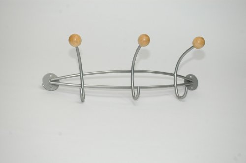 High quality coat rack with 3 hooks, made from steel and wood, matt chrome and beech
