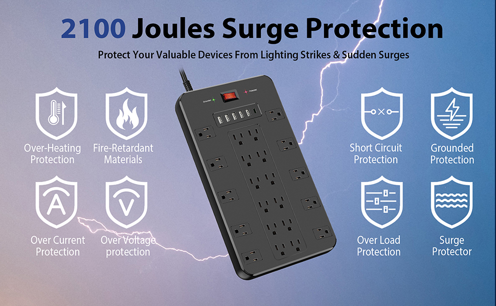 Fdtek Power Strip Surge Protector Multiple Plug Outlet With 22 | Desertcart South Africa