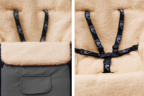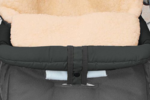 baby-joy Footmuff Kai 120CM xxl Felt Free Sheepskin/Acrylic Wool Thermal Footmuff for Buggy Stroller Sled - 02/Graphite - 5-punkt-gurt-schlitze 1 Front), WITH ZIPPER EQUIPPED - for Buggy, Pushchair, Children Car Seat and Sled Usable - Winter Foot Muff Cosy Toes thermofusssack Felt Free 120 cm - Size 120 cm and in 24 Farben Available, Superwash & Supertherm - Soft and Warm Sheepskin and Acrylic Wool Lined