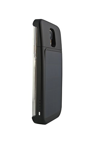 INTEGRATED POWER, PROTECTION & SOLAR CHARGERIt acts both as a protective case and also as an excellent external battery pack. The potent built-in 4000 mAh lithium-ion polymer battery can be engaged using the On/Off switch button at your will and it is able to provide additional talk time and stand time for your Galaxy S5. There are two ways to charge the case - You can use the included micro USB cable to charge this device or exposing the solar panel in the back to DIRECT SUNLIGHT to charge the device. It works like a regular port and can sync and charge with computer or AC adapter. As with any solar chargers, it will take some time to charge the device under direct sunlight. The case is stylish and portable with black non-slip finish and has been designed so that you can use the Galaxy S5's camera without removing the case. Please charge the battery case for at least 8 Hours before first use to achieve maximum performance. SPECIFICATIONS: •High efficiency Solar Panel: 5.5V/240mA •Lithium polymer Battery: 3.7V/ 4000mAh •Input: 5V/1A •Output: 5V/2.1A •Self-charging time: 10 hrs (by laptop/usb); 6 hrs (by 5V/1A travel charger); 15-17 hrs (via solar panel, under full sunlight condition) •Power display: 4 LED indicators •On/off button: Press to start charging •Size: 5.86in x 2.95in x 0.71in •Weight: 5.6oz OUR NO HASSLE GUARANTEE We believe that you should expect nothing but the very best from Portable Solar Shop. If you do not find our products to be FREE OF DEFECTS in quality and workmanship, simply notify us within 30-days of your purchase and we will promptly replace it or process your order for a full refund. SPECIAL NOTE: Power Case is not water resistant after installation.