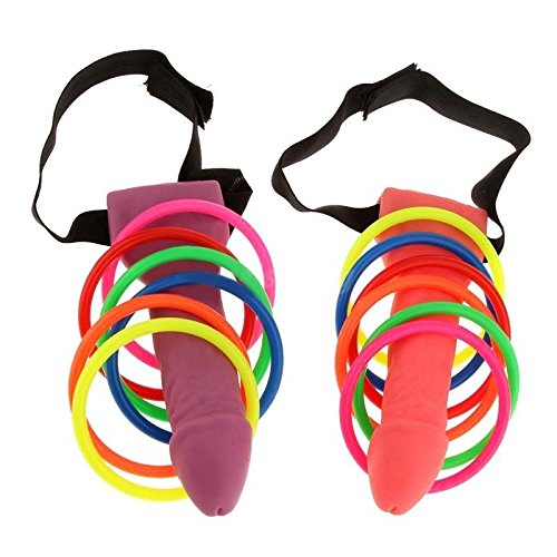Description: Looking for some Hen Night party games? A willy hoopla game with a difference! This great hen or stag party game comes with one black and one pink willy & 12 rings. Throw your multi coloured hoops from one dick head to the other! Note: Since the size above is measured by hand, the size of the actual item you received could be slightly different from the size above. Meanwhile, please be reminded that due to lighting effects, monitor's brightness / contrast settings etc, there could be some slight differences in the color tone of the pictures and the actual item.