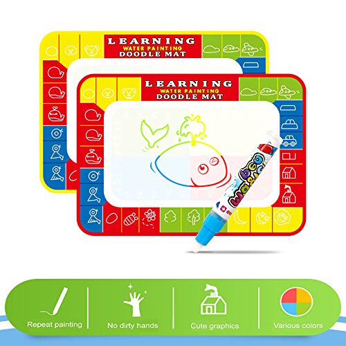 Description: Using a magic pen(included) filled with water, this mat will create fabulous doodles and images to the amazement of your children. You don't need any ink, pens or paint to start making pictures on this magical floor canvas. The drawings will magically disappear in few minutes ready to doodle again. Writing,Drawing,Doodle,Stamp and so on,Open up the kids imagination. Foldable and Lightweight,perfect for Indoors and Outdoors Use. Instruction: -Fill the pen with water: 1)Spin clockwise to open the pen 2)Add water 3)Spin anticlockwise to close the pen 4)Star doodle Package: 1 Doddle Mat 2 Water Drawing Pen without Caps(Random Color)? OPP bag packing