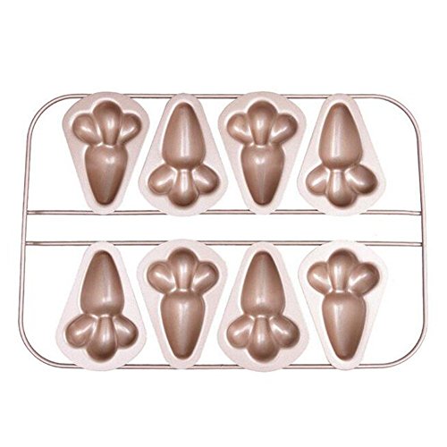 Product Name: cookies moldMaterial: carbon steel,Non - stick and easy to cleanColor£ºChampagneDimensions: 30.9*21*2.9CMShape: irregular carrot shapeNote:Non-stick is not completely non stick, but relatively easy to release and cleaningDo not use sharp metal products and chemical cleaners to wipe the productDo not leave baking or baking products in the applianceTry to avoid collisions and friction, resulting in layer wear or scratching