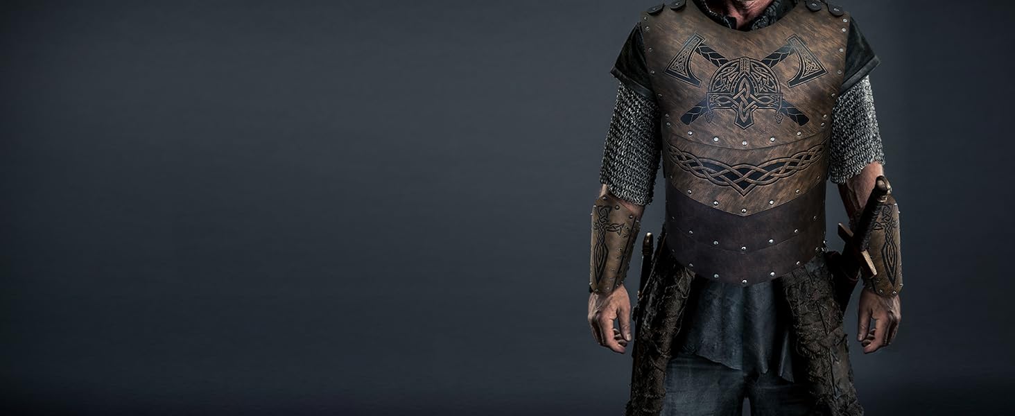HiiFeuer Viking Faux Leather Embossed Langskip Chest Armor, Retro Medieval Knight Leather Armor for LARP/Cosplay (Black B)