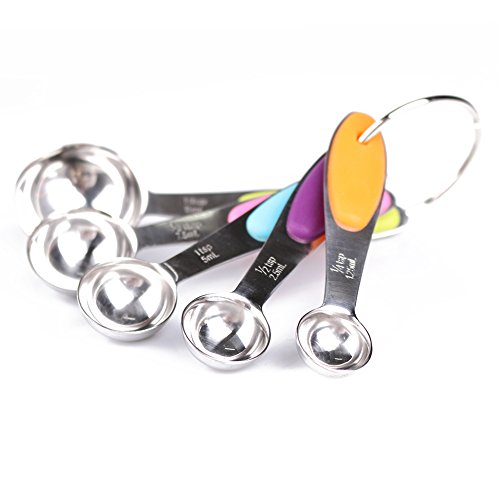 Features: 1.Commercial grade stainless steel: Never get rust, melt, bend or break. 2.The cups and spoons are sized so that it is easy to nest them together for storage. they can be used separately and easy to hang. 3.Our cups and spoons have no sharp edges, which makes baking and cooking safe with your little ones.Can be cleaned with a dishwasher. 4.Engraved Measurement Markings - do not fade, wash off or wear out like printed ones the cups and spoons are perfect for dry as well as wet ingredients. 5.Measuring spoons prevent yourspices being contaminated by dampness of your fingers. The shape of the spoons makes it easy to dig inside your small spice jars. Specifications: 5 CUP SIZES ※1 cup - 250 mL ※ 1/2 cup - 125 mL ※ 1/3 cup - 80 mL ※ 1/4 cup - 60 mL ※1/8 cup - 30 mL 5 SPOON SIZES ※1 tbsp - 15 mL ※1/2 tbsp - 7.5 mL ※1 tsp - 5 mL ※ 1/2 tsp - 2.5 mL ※ 1/4 tsp - 1.25 mL Weight:465g(1.1 pounds) Note: 1.Please wash them timely with clean water after use. Dry them with cloth instead of self drying. 2.The silicone handle is supposed to avoid hot water and steaming.