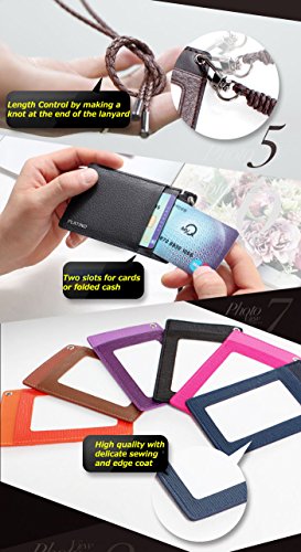 Front ID window pocket with clear cover features visibility and protection. Back 2 cards slots for easy access. Detachable Neckstrap (the same color with the wallet)