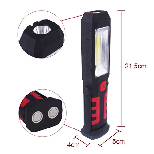 Product description Strong magnets attach metal surface or use hooks to hang anyway to provide brightness. COB lamps beads 400LM,1PCS Top LED lamp bead 60LM.3 bright red alarm lamp behind,press then send SOS signals immediately,suitable for emergency situations. This powerful work lights inspection lamp is ideal for mechanics, DIY, boating, camping, night fishing, or as an emergency lighting for home. Power: 3W Material: ABS Battery: 18650 batteries (not included) Brightness: COB 400LM; LED 60LM Dimensions: 21,5 * 5 * 4 cm Weight: 240 g Packing: White-box Shipping details 1 * Work lamp 1* Data Cable 1* White Box Guarantee We are so confident you will love our product! NuoYo branded products have a 6-month warranty guarantee. We will give you a no fuss money back guarantee if you are not 100% satisfied with your purchase. About us If you have any questions,please contact us,we will reply your message within 24 hours. If you like our products,you can search "NuoYo"then enter our store,seek out your items that you like.