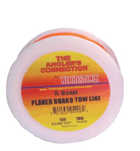 The Angler's Connection Planer Board Tow line, by Woodstock, is a 100% braided Dacron trolling line. These braided Dacron planer board tow lines are water proofed and heat set to reduce the constant strain and stretch from water pressure against the board. This is an excellent line choice for your boards. The Angler's Connection line by Woodstock is available in 130 and 200 pound tests. Colors are lime and orange.