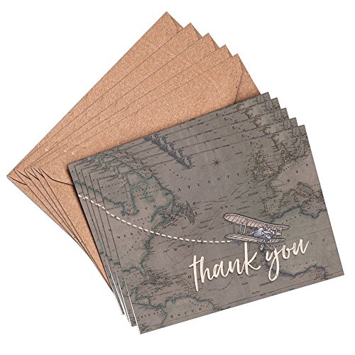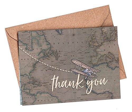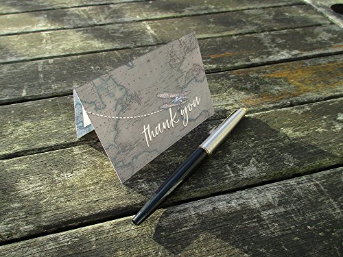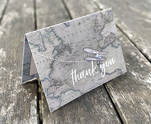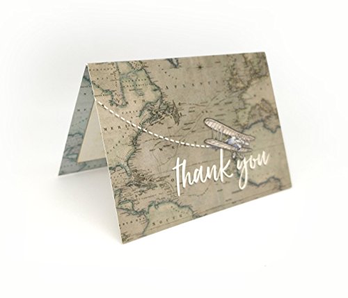 Handmade/ Hand finished Mini Thank you cards 10, 5 or 1 pack. Printed inside with space for message, DIY, fill in yourself, wedding thank you cards, travel destination thank you card, thank you card set, thank you notes, bridal shower, baby shower, vintage-themed, map, biplane travel, hand-drawn and hand-painted, rustic thank you cards made with 300gsm card. A7, folded thank you cards to complete yourself and matching recycled kraft envelopes. These thank you cards match a range of Paper Willow wedding stationery but are also suitable for other occasions.