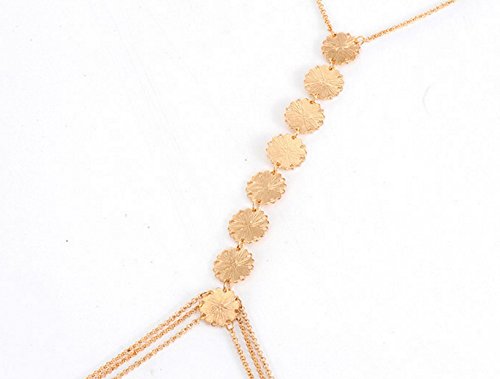 Size and weight pearl chain: 100 x 120 x 7 cm, about 60g I size and weight of the body chain with butterfly: 126 x 4 cm, approx. 5g I size of the talisman necklace with amulet: 95 x 4 x 47 cm, approx. 48g I size and weight of the body chain with gemstone: 111 x 141 x 5 cm, approx. 35g I size and weight e of thbody chain with coins/pendants: 53 x 5 x 18/93 x 4 cm – 58.7g.