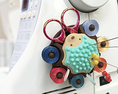 This unique and functional Porcupine Caddy keeps your sewing essentials right on your machine. Is made of high quality rubber and comes with a strong suction cup that sticks to any sewing, quilting, embroidery machines or on any smooth surfaces. Scissors and bobbins not included. (Some surfaces may have small texture that prevent right seal, is so please apply a small amount of hair gel around suction rim before installing) Check Smartneedle's unique line of functional sewing notions! you will be glad you did...