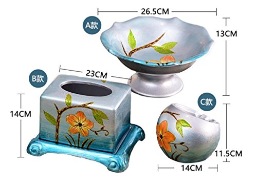 Name: fruit bowl / basket plate three setsItem: Glass Lake fruit plate three setsDecoration Type: Desktop DecorationColor: orangeMaterial: ceramicCraft: hand-painted oil paintingSize: fruit plate -26.5 * 13, tissue box -23 * 14cm, ashtray -14 * 11.5cmUse: put fruit, dried fruit, snacks, snacks; friendship gifts, move new home, wedding gifts, engineering decorationApplicable places: restaurant, living room, study, bedroom, office, hotel, bar, coffee shop, clubhouse, KTV, lobby, etc.Style: European retro, luxurious, idyllic romantic