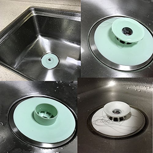 Multi-function Deodorant Drain Plug and Hair Drainer Catcher. 1. 2-in-1 tub stopper and strainer, keeps the water in the sink or flow the water away / catch hair and clogging items. It also prevents odor from sewer. 2. Made of high quality PTR silicone material, non-tonxic, soft and flexible. 3. Fit for kitchen sink, bathroom bath tub or laundry. Suits for hot and cold water. But the hole size should not wider than 1.49in, and does not apply to a hole that has a buckle. 4. Flat contoured base and tapered edges maximize water pressure to give a nice seal. 5. Easy to use, Just press to close and press it to open. 6. You can wash bathtub drain stopper easily by warm water or soap. Like all stoppers, please clean the wastes and hair in time, get rid of clog and mold. Note: Please clean the drain protector frequently,and get rid of the wastes and hair in time. Please keep far away the kids. Product Details: Product net weight: 2.12 ounces per drain stopper. Product size: 3.93(D) * 1.26(H) in per drain stopper. Package Details: 1 ¡Á Blue Sink Stopper 1 ¡Á White Sink Stopper 1 ¡Á Green Sink Stopper 1 ¡Á Pink Sink Stopper