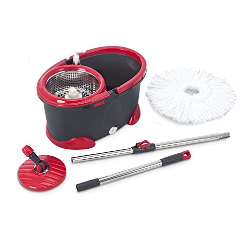 Get a professional cleaning in dry and wet mop microficha and thanks to the stainless steel novohogar with 360 rotation that absorbs in a single pass. The bucket includes detergent dispenser Non Drip and has built-in a protective system Anti-Splash, prevents the dirty water splash outside the cube while rotating. Also features a drain valve on the side that allows you to empty the bucket comfortably. Account with a handle of stainless steel adjustable 180º, allows cleaning in hard-to-reach places, like underneath of the furniture. Includes a locking system. In addition, can be separated into two parts for easy storage. Hygienic: the drive of washing prevents the contact of the hands with the Dirty Water and ensures the maximum hygiene. You can wash the microfibre mop to 60º. Do not use bleach or fabric softener Eco: Uses less water, reduces their loss saving power consumption.