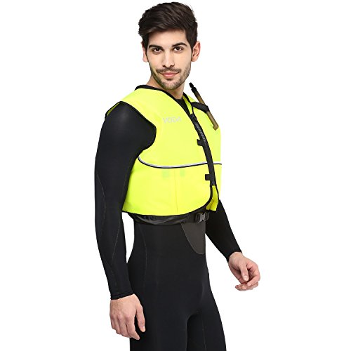 The Phantom Aquatics Snorkel Vests are designed to allow you to swim with your head in the water as opposed to life vests that are designed to keep your head out of water. They are inflatable so you can add or subtract air to meet the level of buoyancy needed by the wearer. This vest also offers an adjustable waist and crotch strap in order to secure the vest in place with maximum comfort. Available in Day-Glo yellow, the snorkel vest should be considered a necessary piece of your snorkeling equipment.