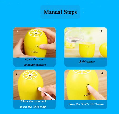 Specification: Color: Yellow Material: ABS/ PP/ PET Working time: 5.5 hours Container capacity: 180ML Spray rate: 40ML/ H Applicable area: 10 ㎡ Light source: LED Light power: 0.5W power supply: USB Sound: below 36dB Power: 2 W Input voltage: DC 5V Working current: 250-400 MA Water shortage protection: support Feature: - USB humidifier, spray rapid and big - can be served as car humidifier, removing dust, cleanning the dirty air and prevent a cold - Fantasy bright night light function: equipped with night light function; can accompany with you in the night with colorful night and fresh air - The shell of humidifier adopts ABS material and the part in contact with water uses PP material, which is commonly used in baby bottle - Built-in waterproof silicone ring, if the humidifier dumps, the water inside won't leak out Application: Children's room, bedroom, bathroom, living room, office, car, outdoor and so on Note: 1. This product is a humidifier, whose material and structure are not suitable for aromatherapy. 2. It's better to add water-soluble essential oils if you want to add essential oil. Otherwise, the humidifier may be damaged by the essential oils. 3. It's better to use tap water instead of distilled water or pure water. Package included: 1* humidifier 1* USB cable
